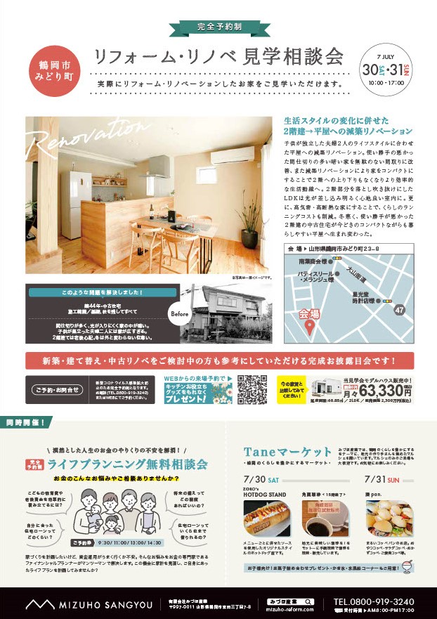 【7/30㊏7/31㊐】リフォームリノベーション見学相談会 開催します!(終了しました)