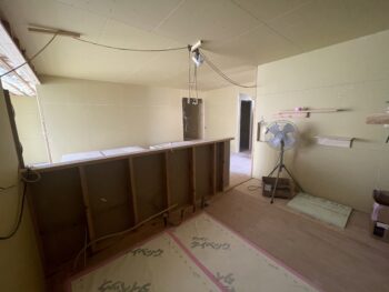 | 結婚と出産をきっかけに、「そろそろ家を持ちたい」と考えられたお客様。アパート暮らしでは音や周囲の視線が気になり、もっとのびのびと子育てができる環境を求めていらっしゃいました。将来を見据え、階段のないワンフロアで暮らせる平屋を希望され、新築も検討されましたが、予算を抑えながら自分たちらしい住まいを実現したいという思いから、リノベーションという選択肢にも関心を持たれました。リノベならではの雰囲気や素材感を大切にしつつ、LDKには土間スペースを取り入れたいという具体的なご要望をお持ちでした。 |