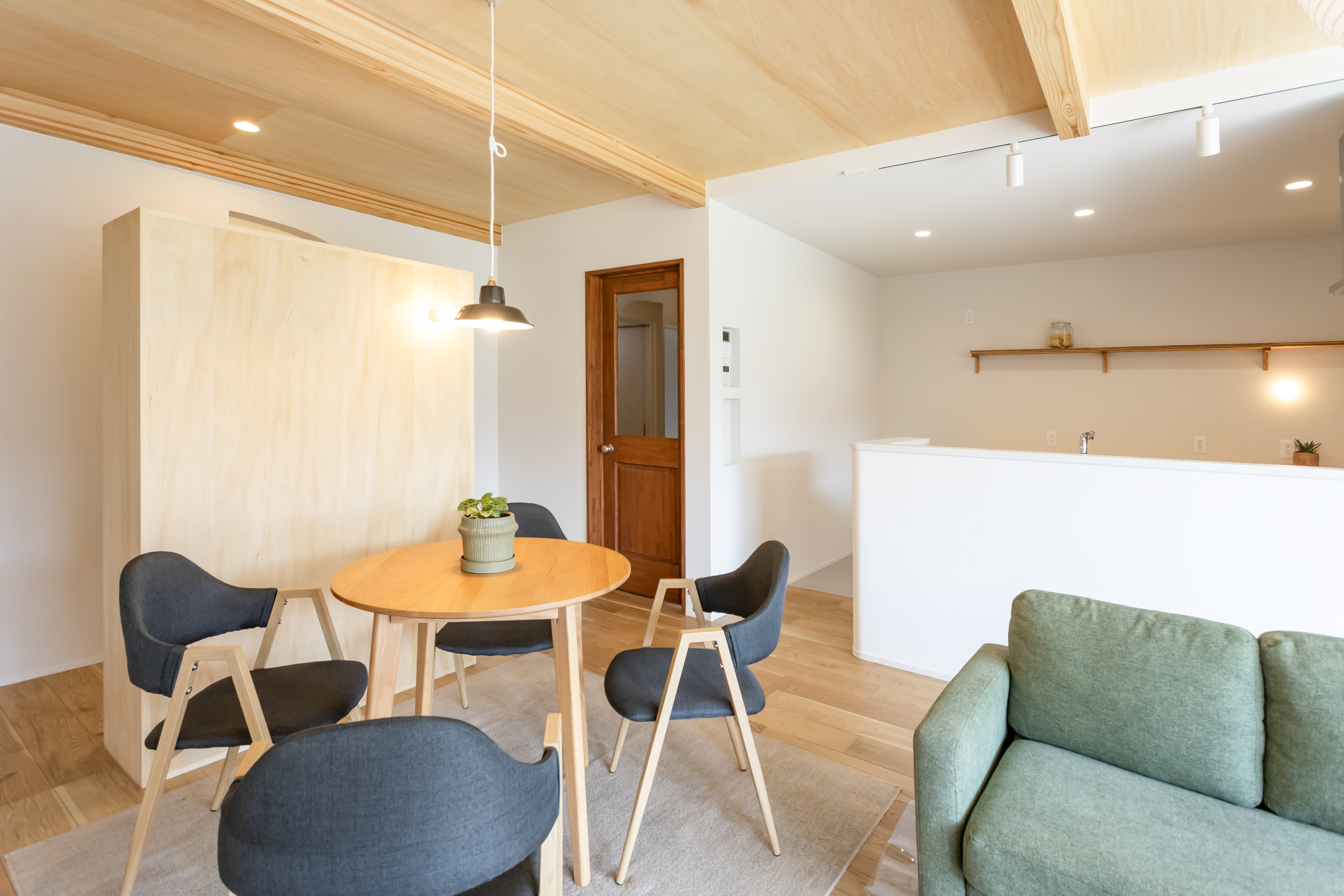 | 結婚と出産をきっかけに、「そろそろ家を持ちたい」と考えられたお客様。アパート暮らしでは音や周囲の視線が気になり、もっとのびのびと子育てができる環境を求めていらっしゃいました。将来を見据え、階段のないワンフロアで暮らせる平屋を希望され、新築も検討されましたが、予算を抑えながら自分たちらしい住まいを実現したいという思いから、リノベーションという選択肢にも関心を持たれました。リノベならではの雰囲気や素材感を大切にしつつ、LDKには土間スペースを取り入れたいという具体的なご要望をお持ちでした。 |