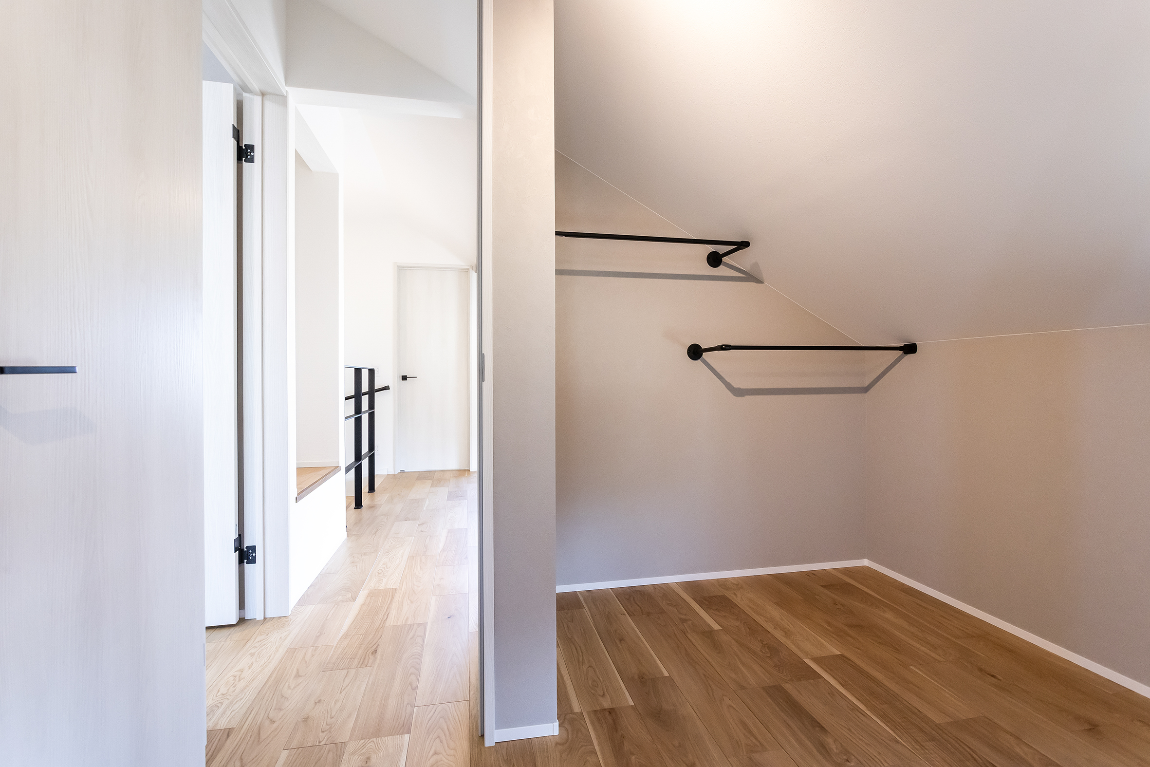 | ご提案内容 | 対面キッチンにカウンターを設け、収納力を高めながら動線をスムーズにしました。 水まわりはトイレ・浴室・洗面所を一か所にまとめ、ホールを小さくすることで、11.5帖だったリビングを14帖のLDKへ拡張。 寝室は6帖のうち3帖をドッグルームに、残り3帖をユニットバスと洗面所に充て、ご家族と愛犬の快適な暮らしを両立しました。 さらに、2階の洋室と寝室は収納を見直し、より使いやすく心地よい空間に。断熱性能も高め、窓は二重サッシに更新。水まわりも一新し、UB・脱衣室・トイレを新しく整えました。 |